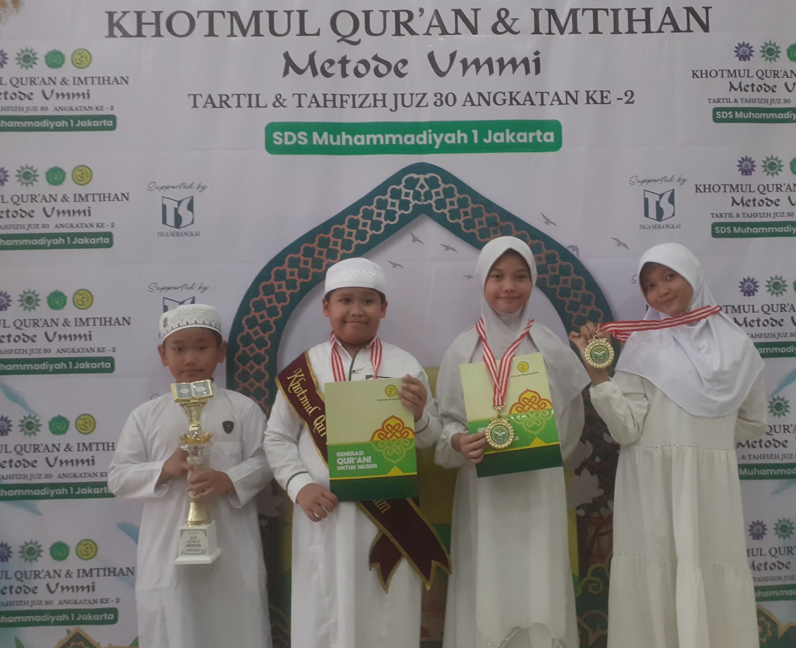 Jakarta – Kepala SD Muhammadiyah I Jakarta, Ibu Nining Sukamah, S.Pd., Gr, menjelaskan bahwa kegiatan Khotmul Quran dan Imtihan Tartil Tahfiz Juz 30 merupakan rangkaian acara untuk anak-anak setelah menuntaskan jilid Ummi.
